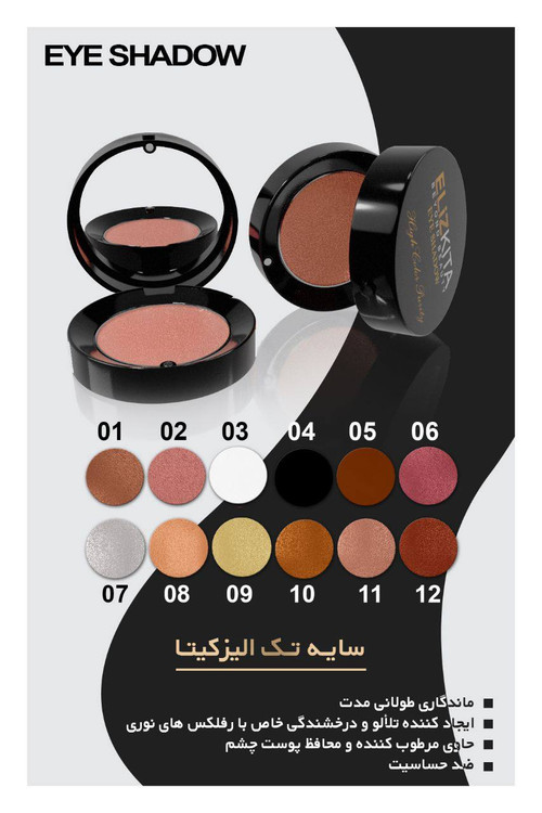 سایه چشم الیزکیتا با داشتن بافتی بسیار سبک به راحتی بر روی چشم شما نشسته و هیچگونه سنگینی روی چشم شما ایجاد نمیکند . ماندگاری بالا این سایه در کنار بسته بندی بسیار جذاب و استاندارد باعث شده است که این محصول یک محصول بسیار مناسب برای چشم شما باشد . درب مگنتی سایه چشم به راحتی بسته میشود و خیال شما را بابت نریختن سایه راحت میکند . درون درب یک عدد آینه قرار گرفته است تا بتوانید هر کجا که میخواهید آرایش خود را انجام دهید . همچنین ظرف این محصول بسیار محکم طراحی شده است تا با ضربه خوردن خورد نشود.