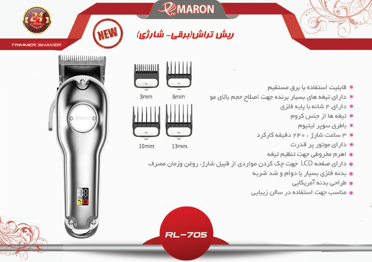 پرومارون ریش تراش برقی-شارژی حجم زن فوق حرفه ای سالنی RL705