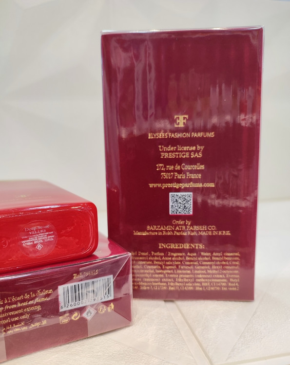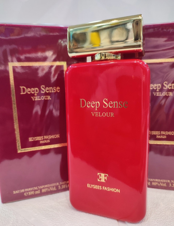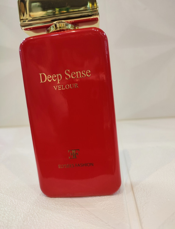 محصولات دیپ سنس ابتدا که به صورت وارداتی بودند تحت عنوان برند پرایم کالکشن بودند. پس از تولید این محصولات در ایران، مدلهای دیپ سنس به خانواده الیزه فشن انتقال پیدا کرده است. ظاهر جعبه عطر با کیفیت و شیک است. جعبه عطر بافتی مخملی و قرمز تیره دارد که خبر از بوی گرم و مخملی عطر دارد. شیشه عطر نیز با رنگ قرمز آتشین خود همین فضا را القا میکند. درپوش طلایی عطر نیز که نام برند روی آن جلب توجه میکند، حس کیفیت را به خوبی انتقال میدهد. در مجموع باید گفت کیفیت شیشه و جعبه عطر خوب و چشم نواز است.