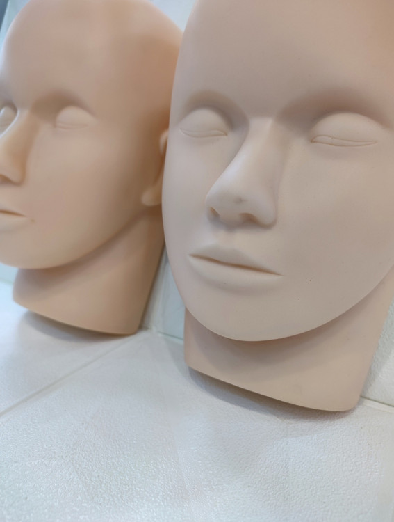 برای تمرین تاتو، کاشت مژه، آرایش صورت، تمرین ماساژ و… از پوست صورت مصنوعی استفاده میشود. در واقع صورت مصنوعی و کله مانکن امروزه کاربرد بسیاری دارند و تسلط هنرجو را بالا میبرند. به وسیله این لوازم هنرجو دیگر محدودیتی برای تمرین ندارد. در حالی که اگر لوازم مصنوعی برای تمرین نباشند، هنرجو نیاز به مدل انسان برای آزمون و خطا دارد.